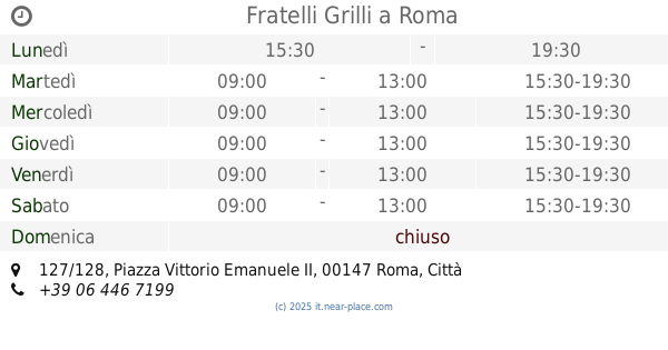 🕗 orari di apertura